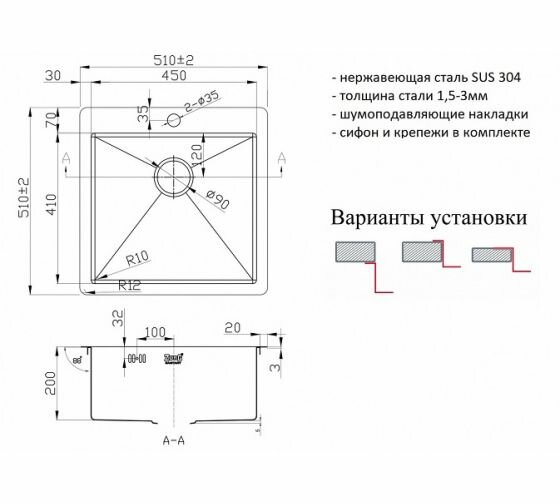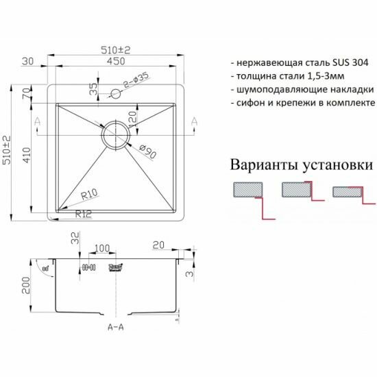 | Установка | врезная |