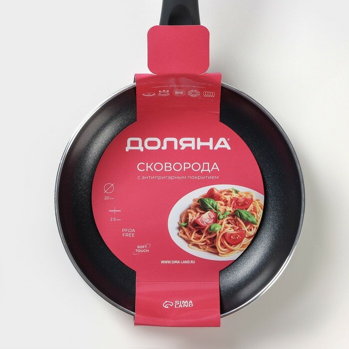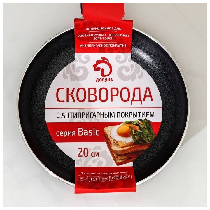 Купить Сковорода Доляна Basic d=20 см пластиковая ручка антипригарное покрытие индукция цвет чёрный