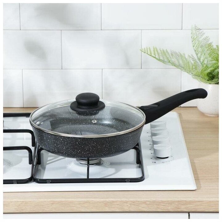 Сковорода Доляна «Элит» d=24 см пластиковая ручка стеклянная крышка антипригарное покрытие цвет чёрный