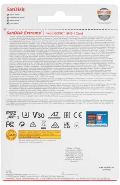 Карта памяти SanDisk microSDXC Extreme UHS-I V30 U3 A2 (170/80MB/s) 64GB