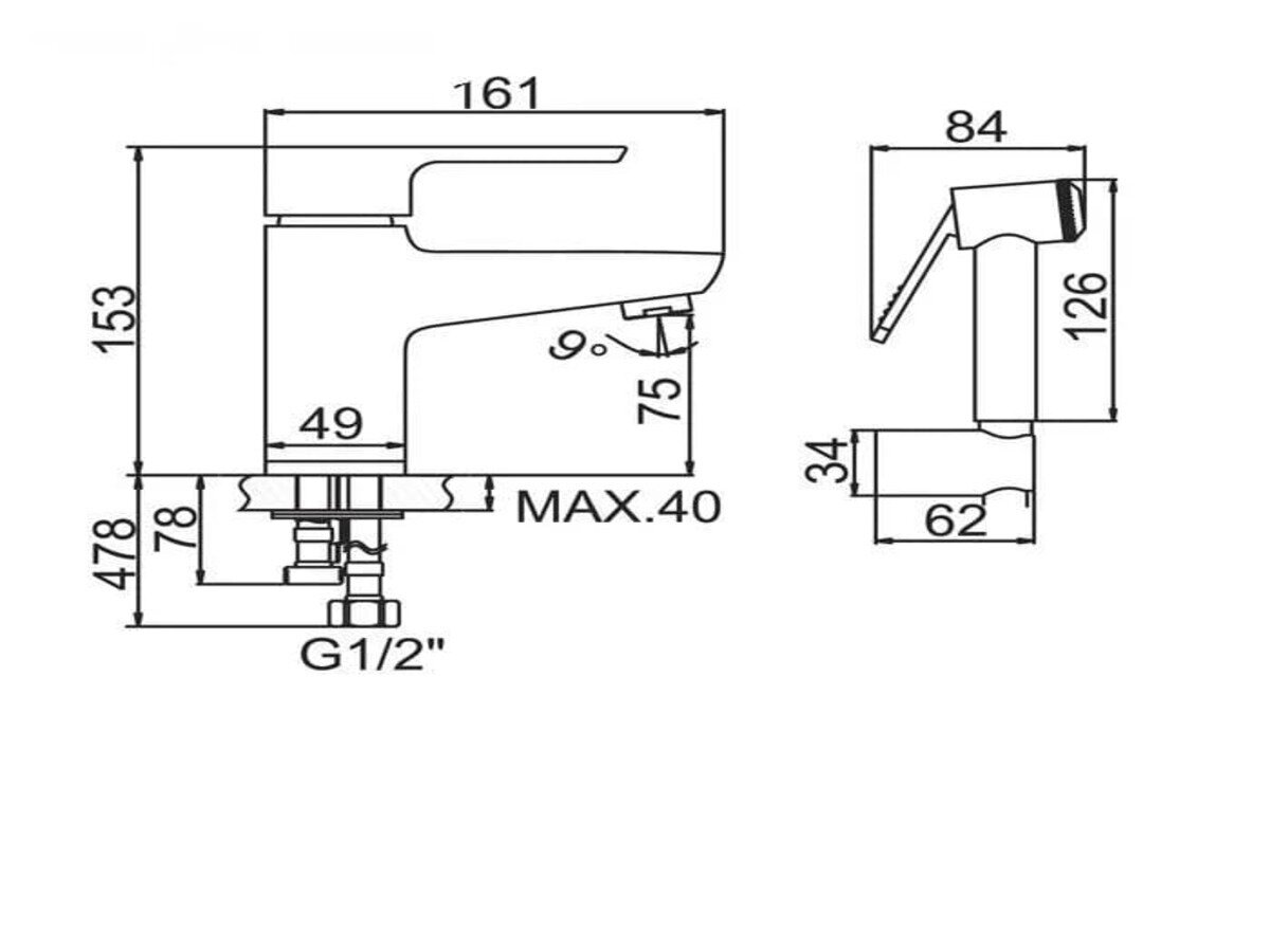 Смеситель для раковины A9202, однорычажный, с гигиенической лейкой, латунь, хром