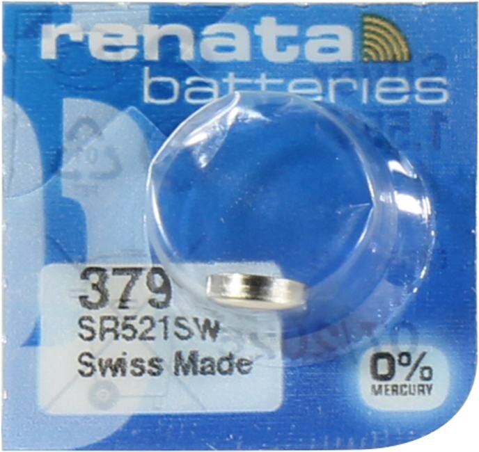 Батарейка для часов Renata 379 SR 521 SW 1.55V, 16mAh, 5.8x2.1mm, в блистере 1 шт.