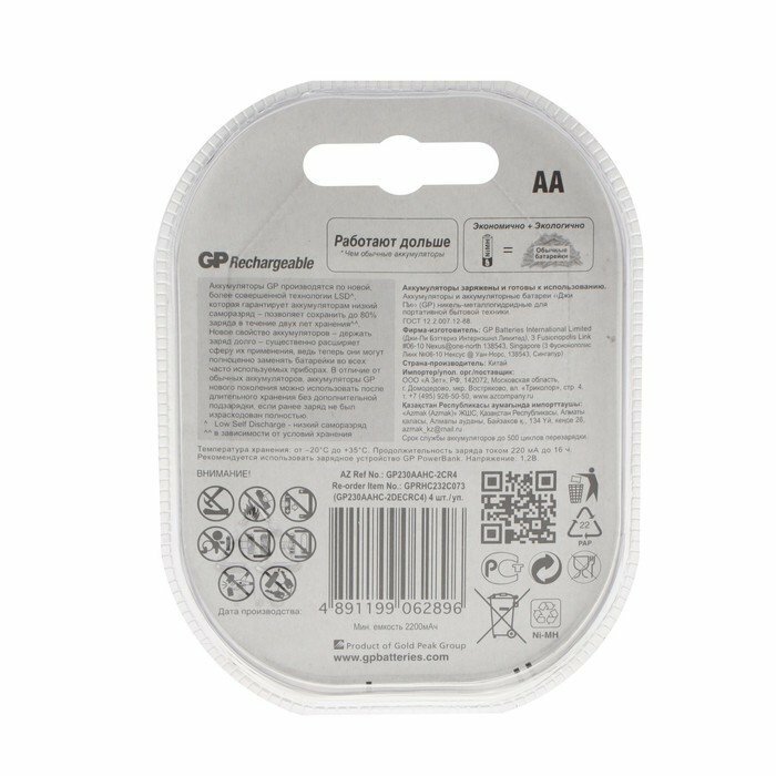 Ниже Вы можете прочитать отзывы на Аккумулятор GP, Ni-Mh, AA, HR6-4BL, 1.2В, 2300 мАч, блистер, 4 шт., ознакомится с подробными характеристиками, посмотреть интересные обзоры и фотографии на Аккумулятор GP, Ni-Mh, AA, HR6-4BL, 1.2В, 2300 мАч, блистер, 4 шт..