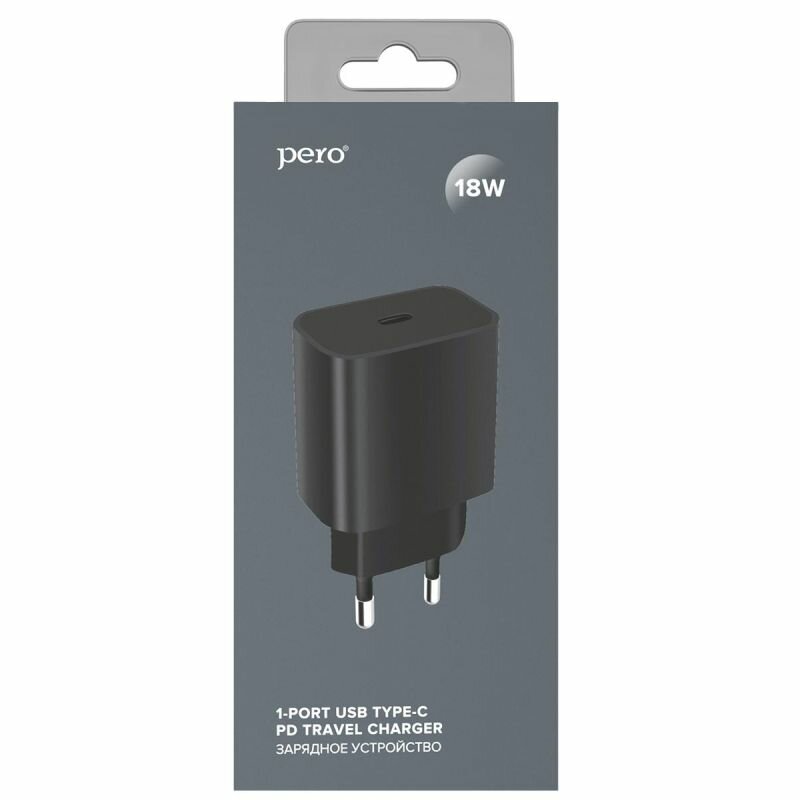 Сетевое зарядное устройство Pero (TC03) USB-C, PD, 18Вт, черный