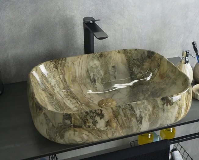 Накладная раковина коричневый мрамор 56x42х14 см, Gid, Mnc186
