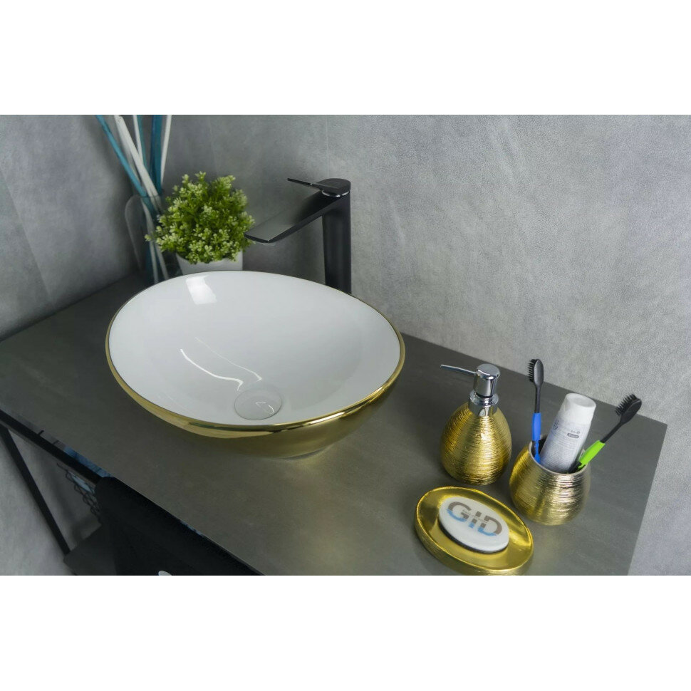 Раковина накладная Gid Nc999 40,5х34 см, белая/золото