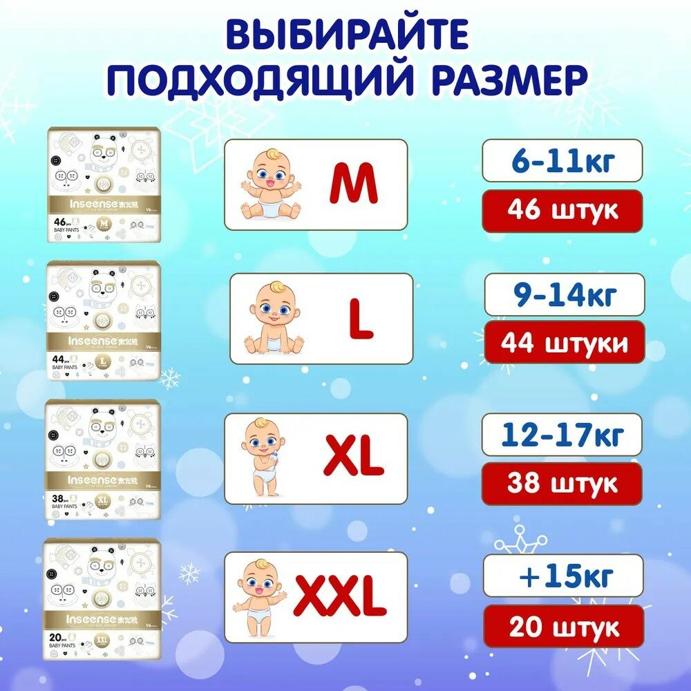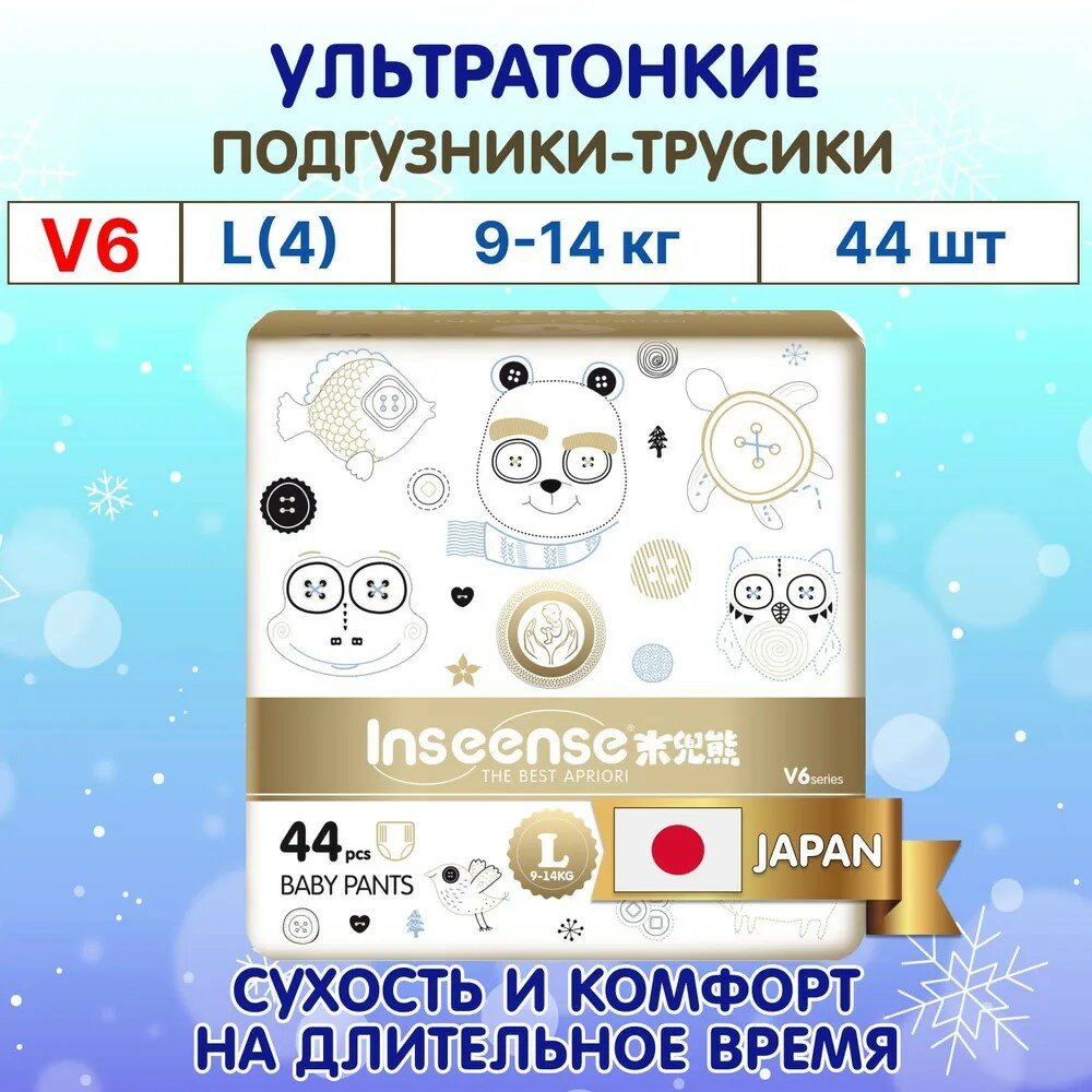 Подгузники-трусики INSEENSE супертонкие V6 L (9-14 кг) 44 шт (золотая упаковка)