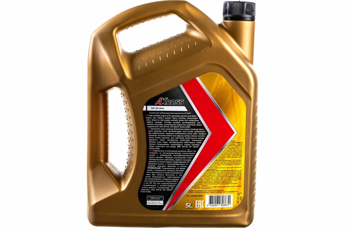 Купить Синтетическое моторное масло AKross Drive 5W-30 SN/CF, 5 л, 1 шт.