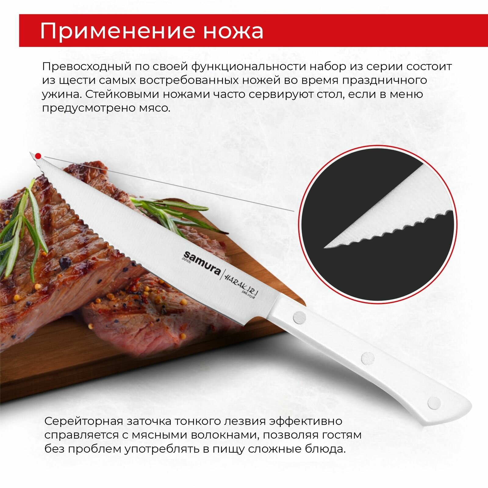 Набор стейковых ножей 6 в 1 Samura HARAKIRI SHR-0260W, 12.5 см, белый