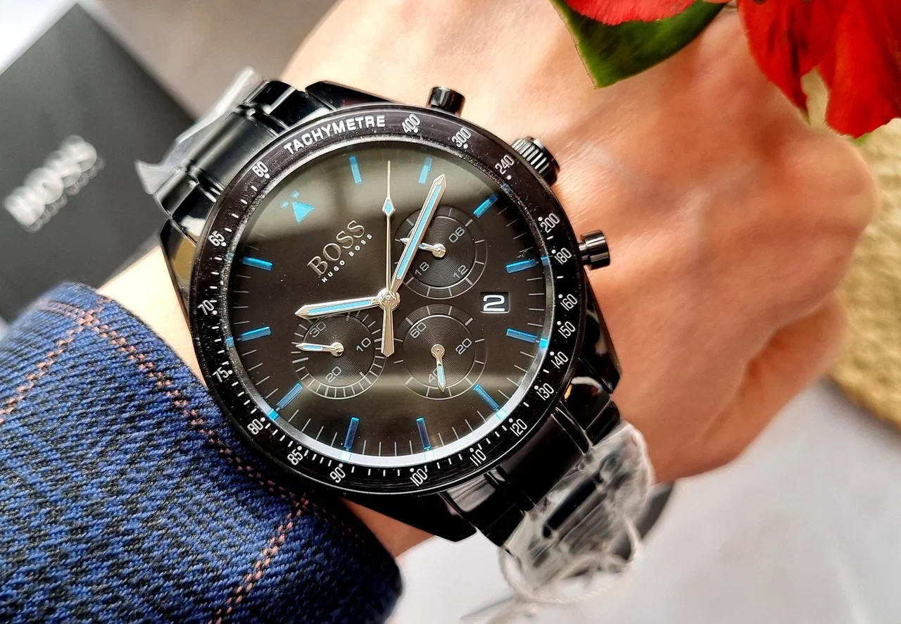 Наручные часы BOSS мужские HB1513634 кварцевые, хронограф, тахиметр, секундомер, водонепроницаемые, подсветка стрелок, розовый