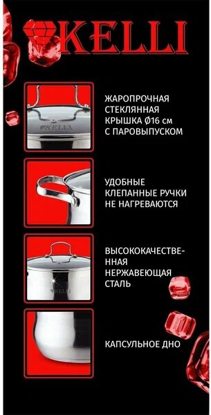 Кастрюля KELLI KL-4293-16 2 л, хром