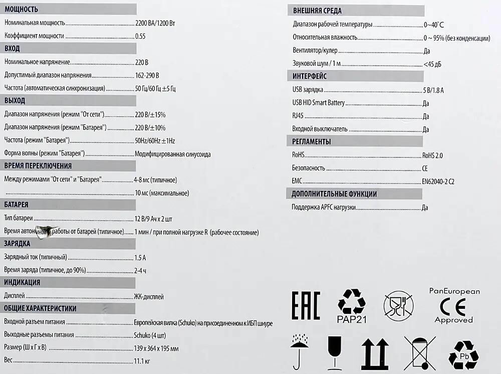 | Плюсы: | Выдерживает достаточно большую нагрузку, долго держит заряд. Евро-розетки. Информативный дисплей. |