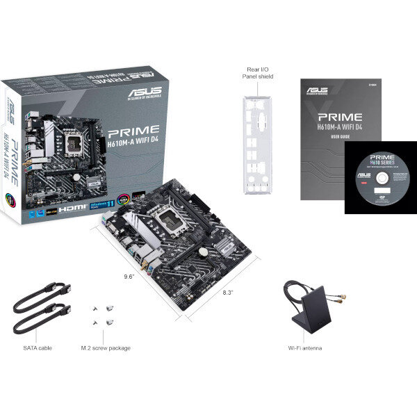 Материнская плата ASUS PRIME H610M-A WIFI D4 Socket 1700 H610 2xDDR4 1xPCI-E 16x 1xPCI-E 1x 4xSATA III mATX Retail