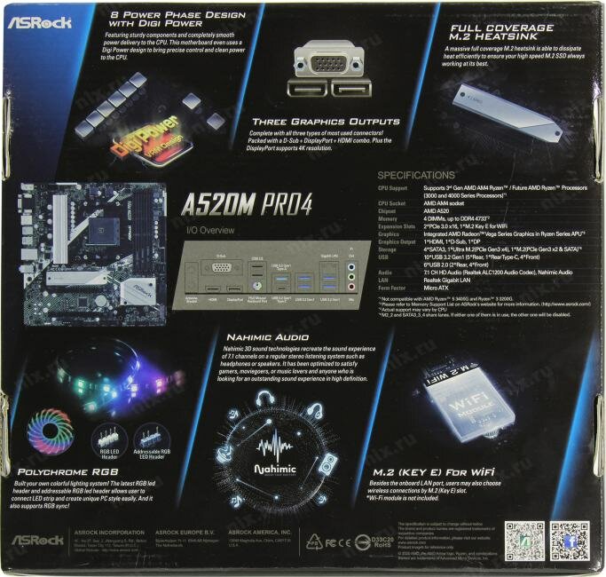 Материнская плата Asrock A520m PRO4 (am4, mATX) .