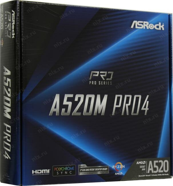 Материнская плата ASRock A520M PRO4 Socket AM4 AMD A520 4xDDR4 2xPCI-E 16x 4 mATX Retail