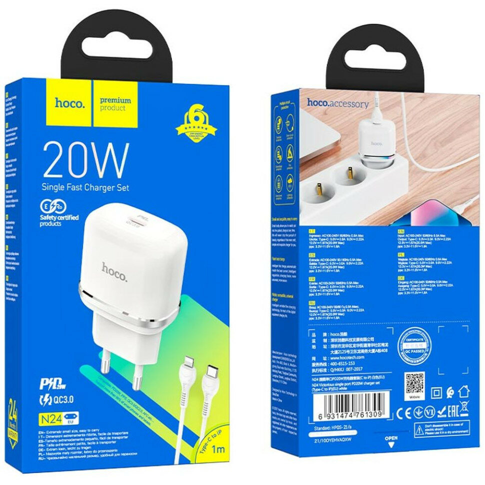 HOCO N24 Victorious singl port PD20W Charger set (Type-c to iphone) (EU) white