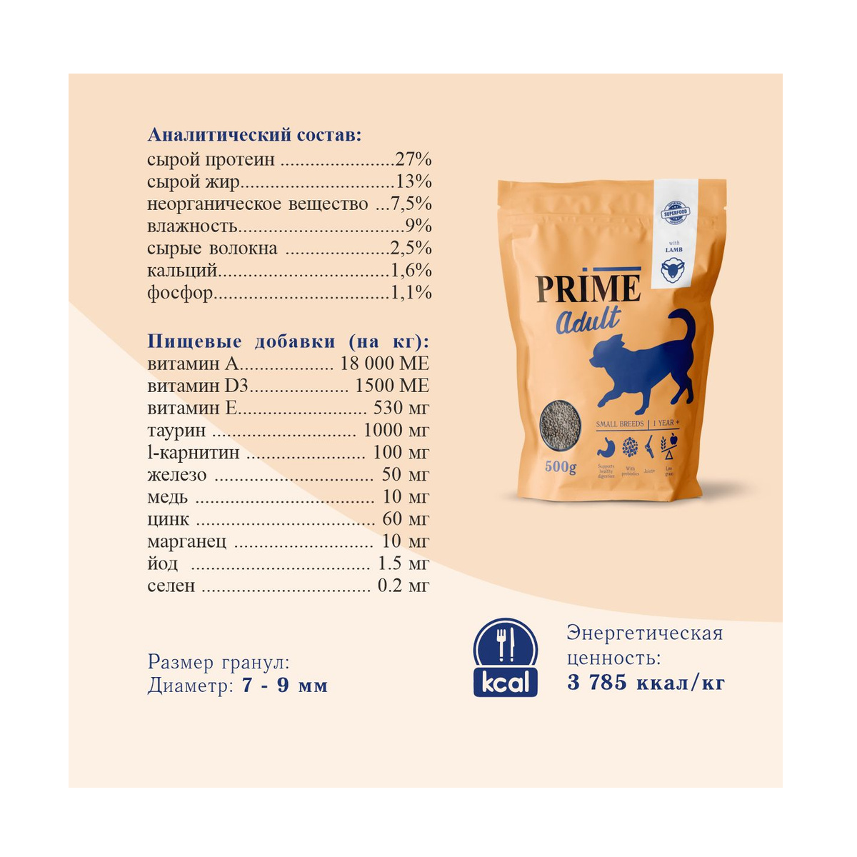 Купить PRIME ADULT SMALL ягненок 500гр для собак мелких пород с 1г