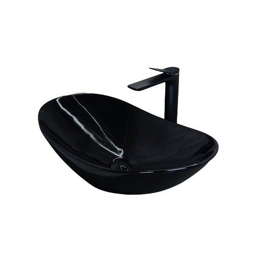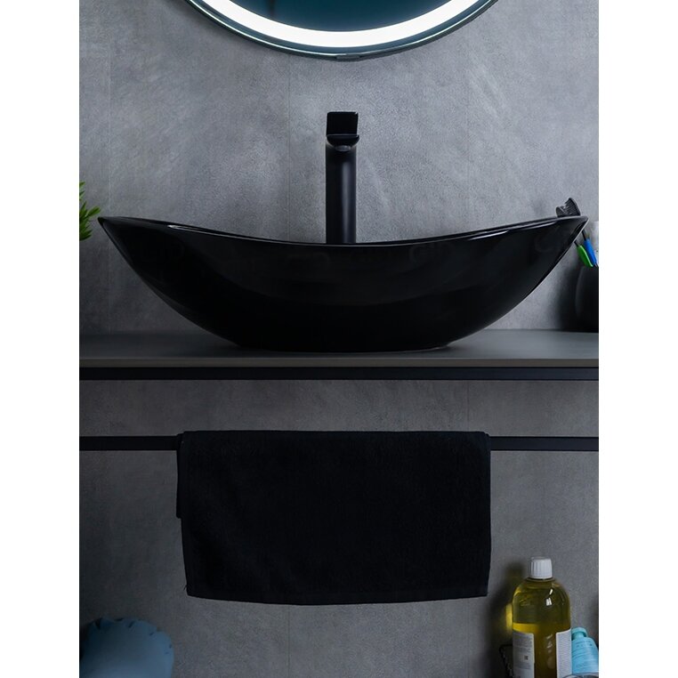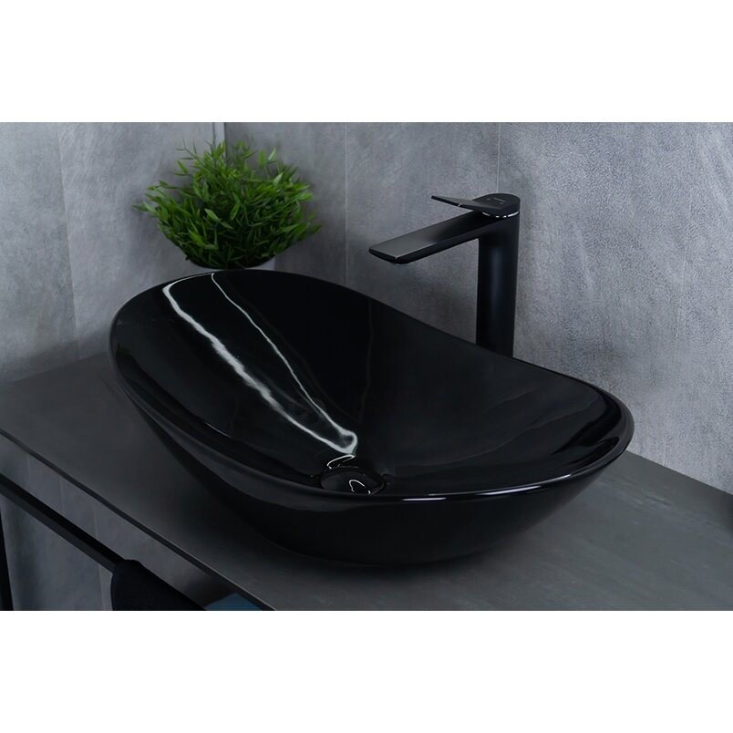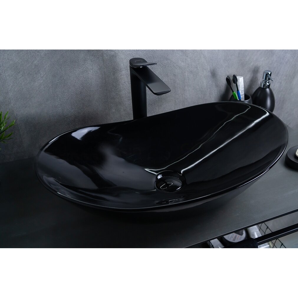 Накладная черная глянцевая раковина для ванной Gid BL9811 с сифоном ORIO A3202