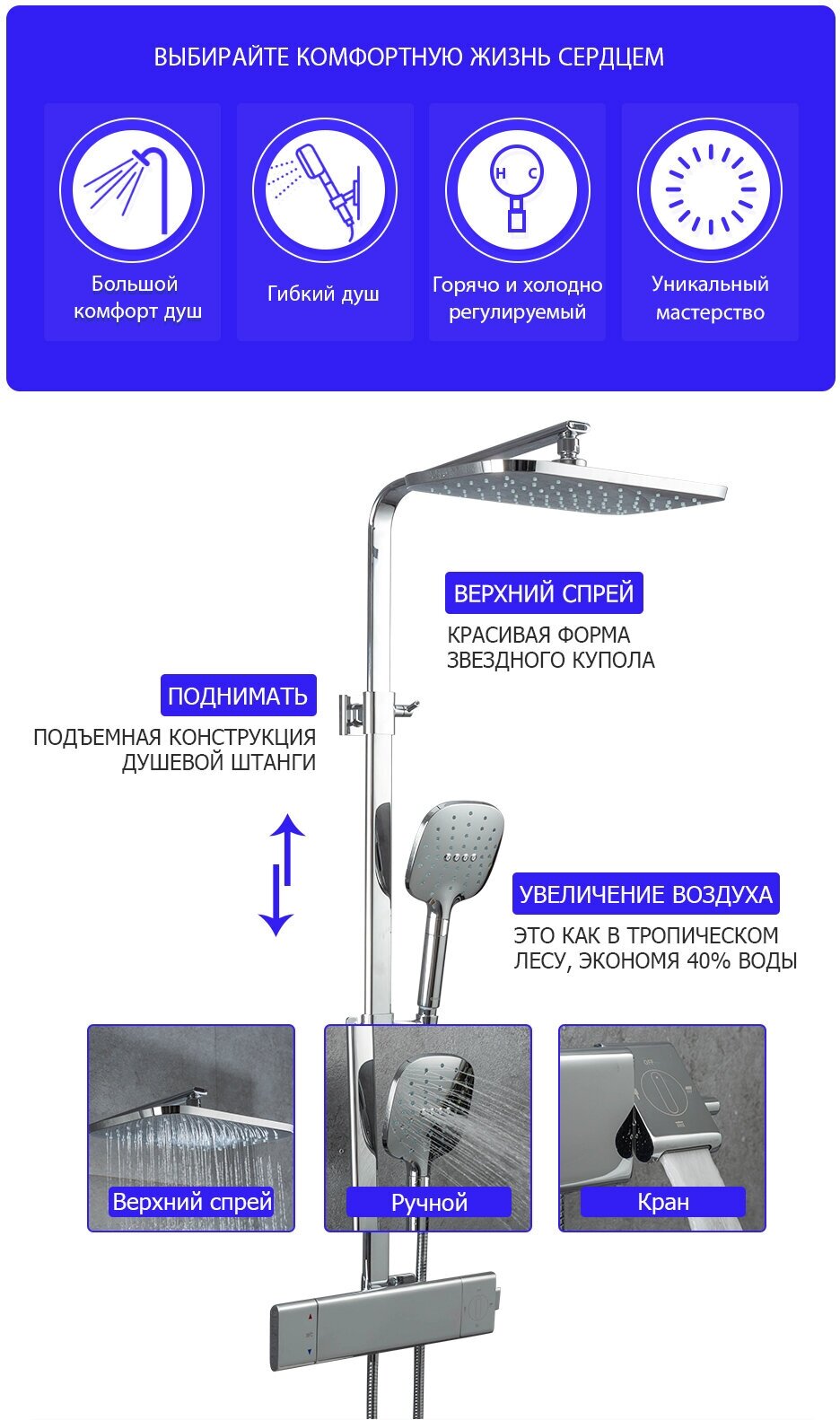 | Режимы | тропический дождь / смешанная струя / мягкая струя |