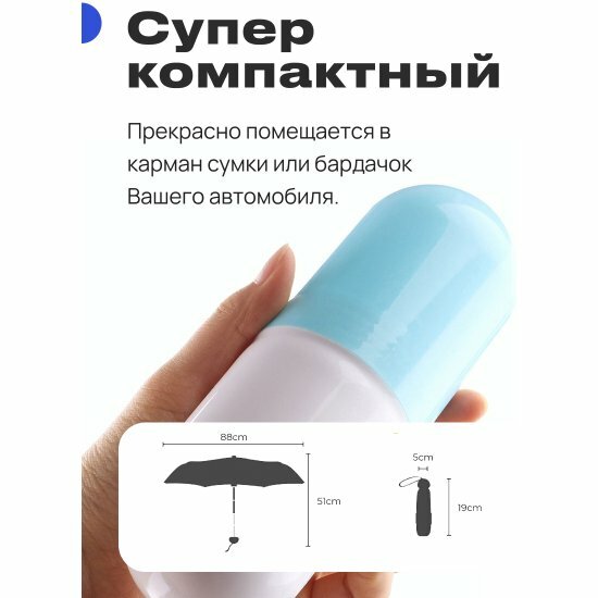 Отличный зонт. Купила из-за компактного размера и необычного чехла-капсулы. Проверку Питерским дождём уже прошёл) удобно что чехол непромакаемый!