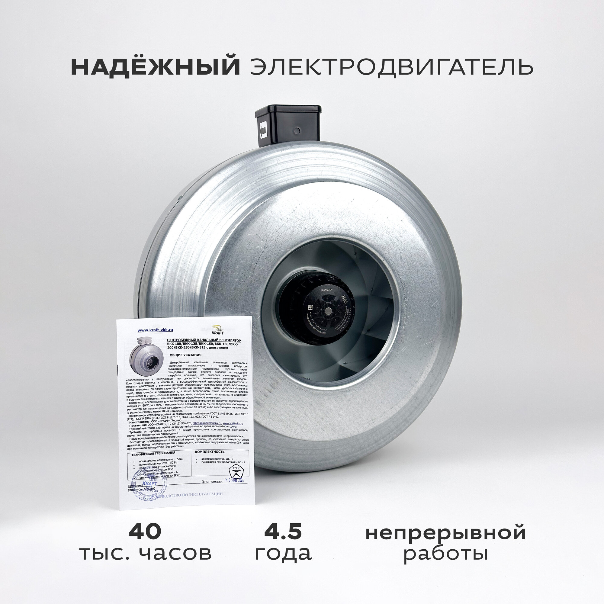 Вентилятор канальный круглый ВКК-200 в металлическом корпусе, 220В, 1000 м3/час, 410 Па, 150 Вт, для круглых воздуховодов диаметром 200 мм, IP 44