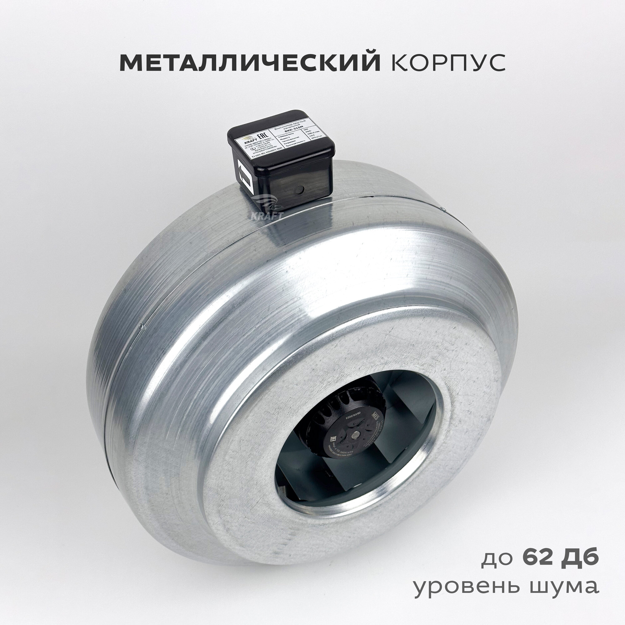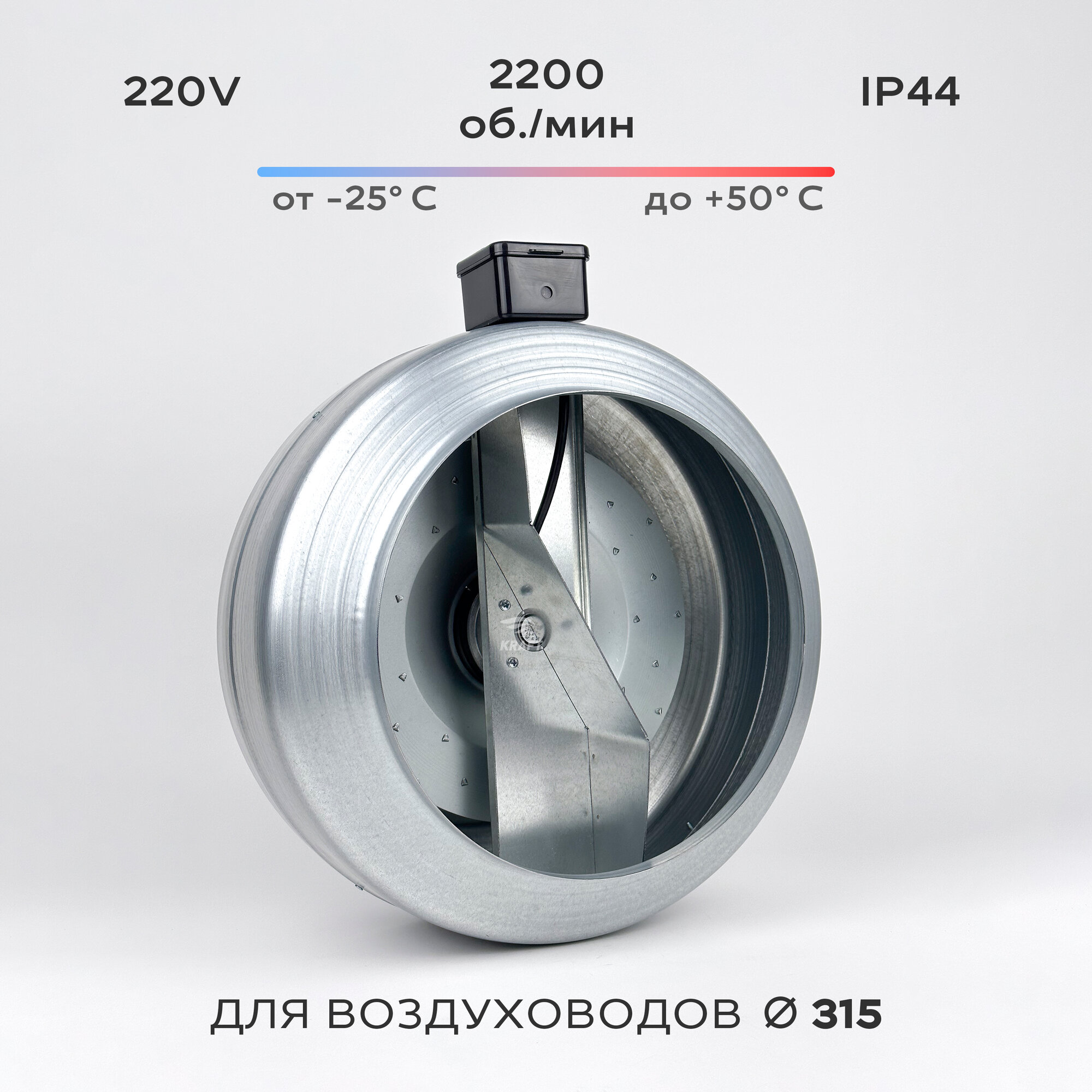 Купить Вентилятор канальный круглый ВКК-315 в металлическом корпусе, 220В, 1870 м3/час, 550 Па, 270 Вт, для круглых воздуховодов диаметром 315 мм, IP 44