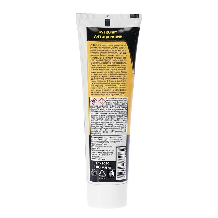 Полироль Кузова Astrohim "Антицарапин", Серия Golden Wax, Туба 100 Мл Ac-8010 ASTROHIM арт. AC8010