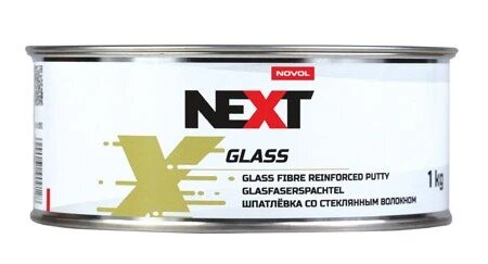 Шпатлевка NOVOL "NEXT "GLASS", с длинным стекловолокном, банка с отвердителем, 1 кг.