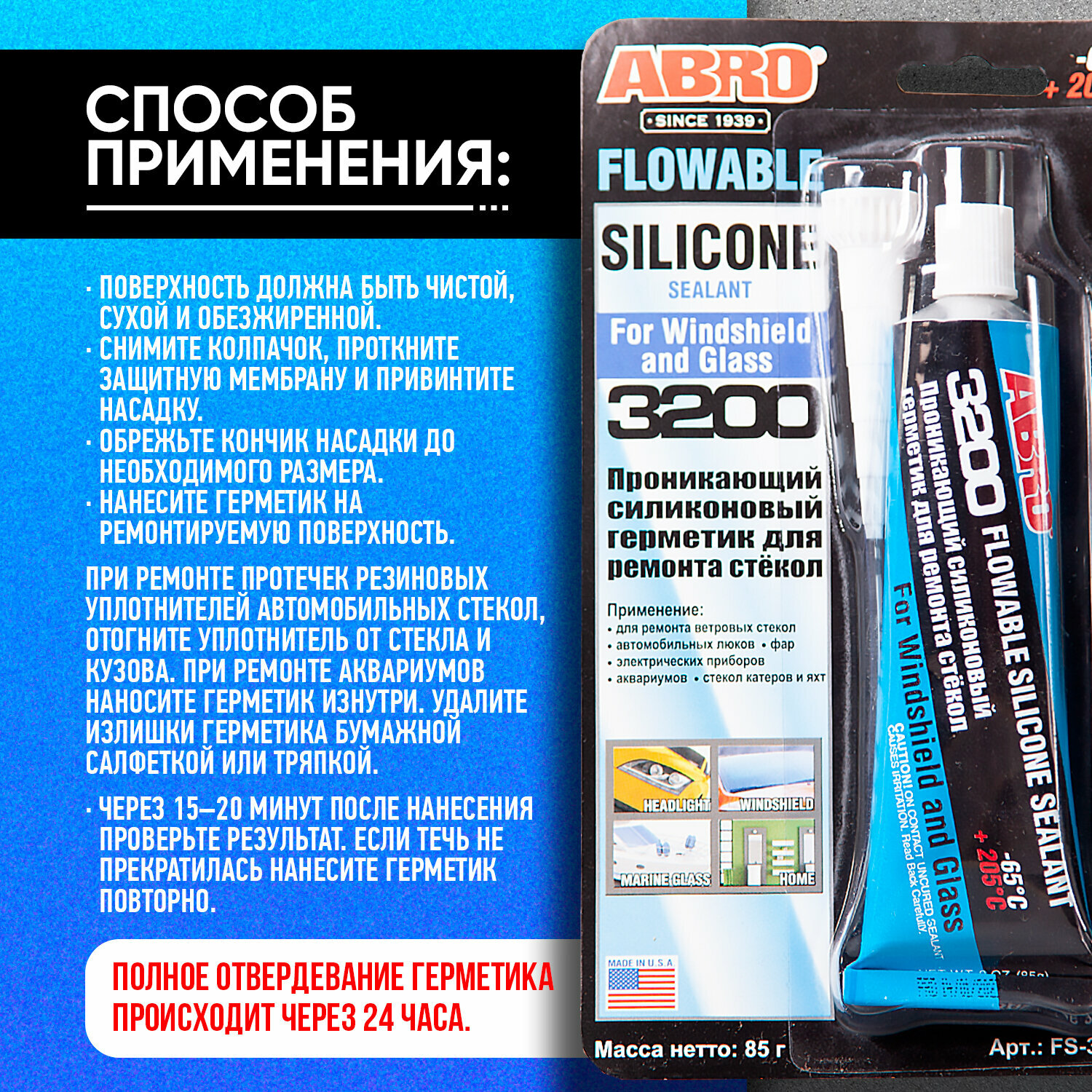 Герметик FS-3200 ABRO - Герметик для ремонта стекол (85г)