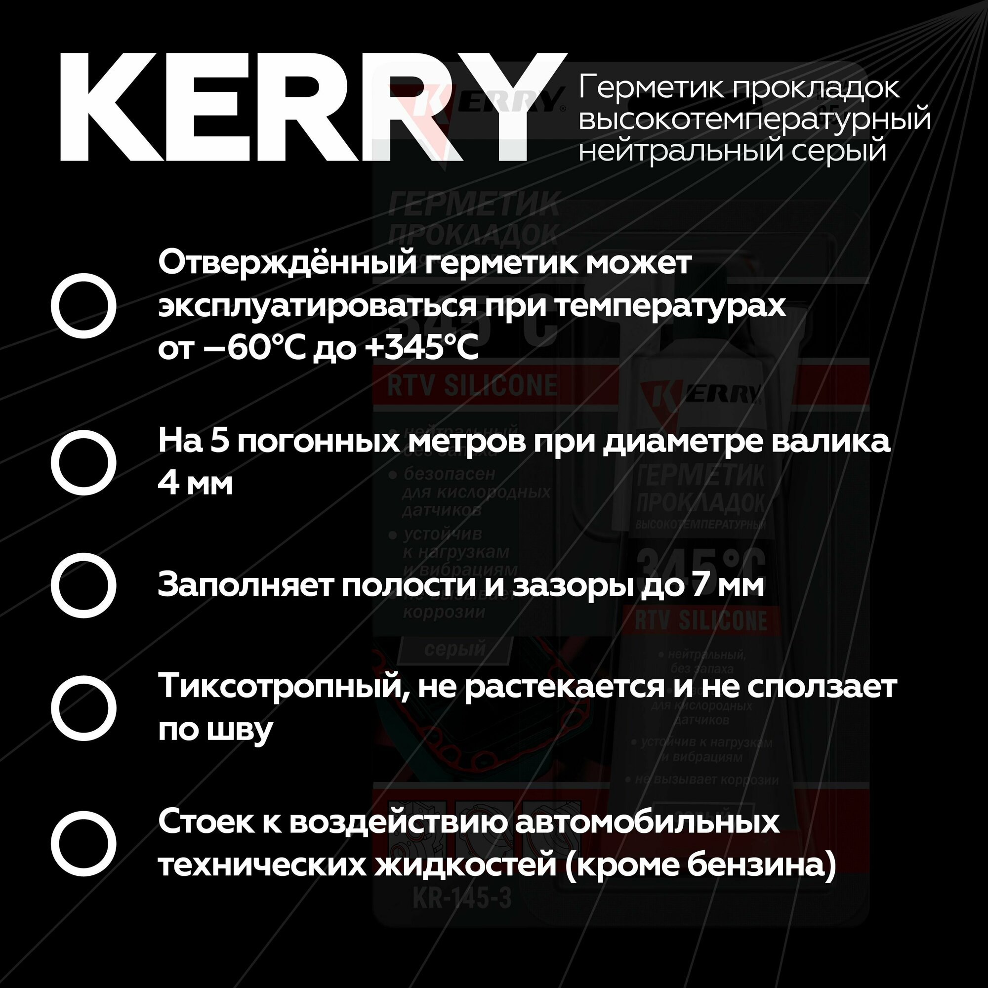 Купить KERRY KR-145-3 Герметик Kerry KR-145-3 85г высокотемпературный силиконовый серый RTV