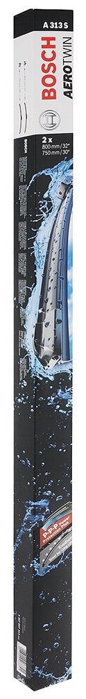 Щетка стеклоочистителя комплект Bosch Aerotwin A313S, 800мм/750мм, бескаркасная, 2шт, 3397007313