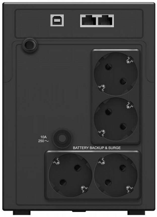 | Плюсы: | Четыре стандартных евро-розетки, разнесённых по всей задней поверхности. Чтобы удобно было подключать нагрузку. Вынесенные вверх задней стенке разъёмы RJ45 (одинаково подходят и для подключения факса или модема). Подключение к компу через специальный разъём юсб. И два юсб порта на передней стенке. |