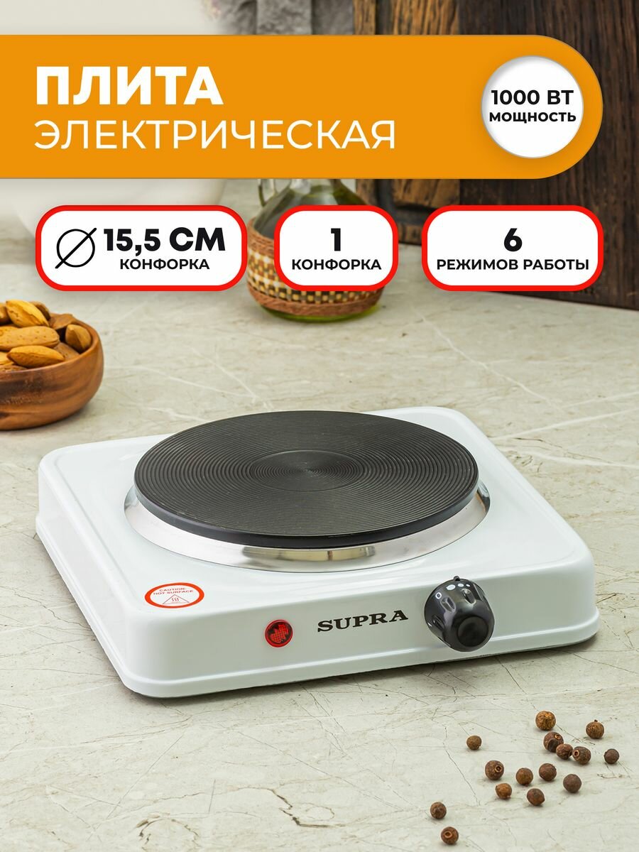 Электроплитка SUPRA HS-191 с конфоркой 155 мм, 6 режимов, 1000 Вт