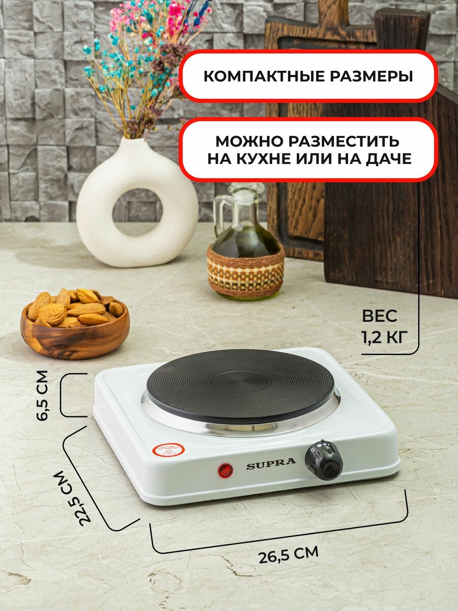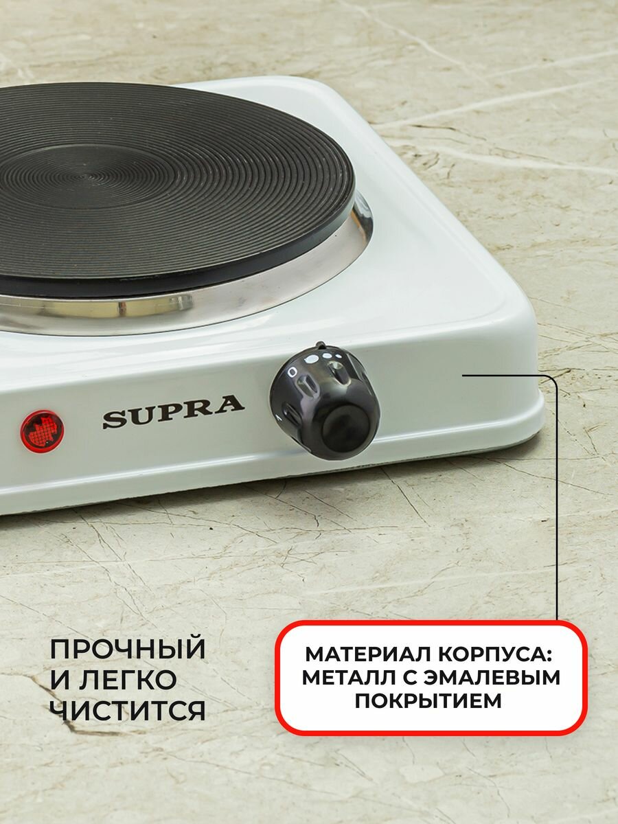 Плита настольная электрическая SUPRA HS-191 белый (1 конф, чугун)