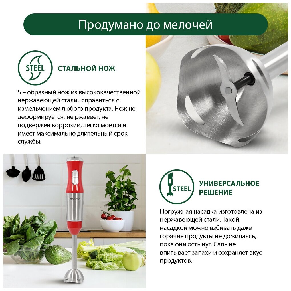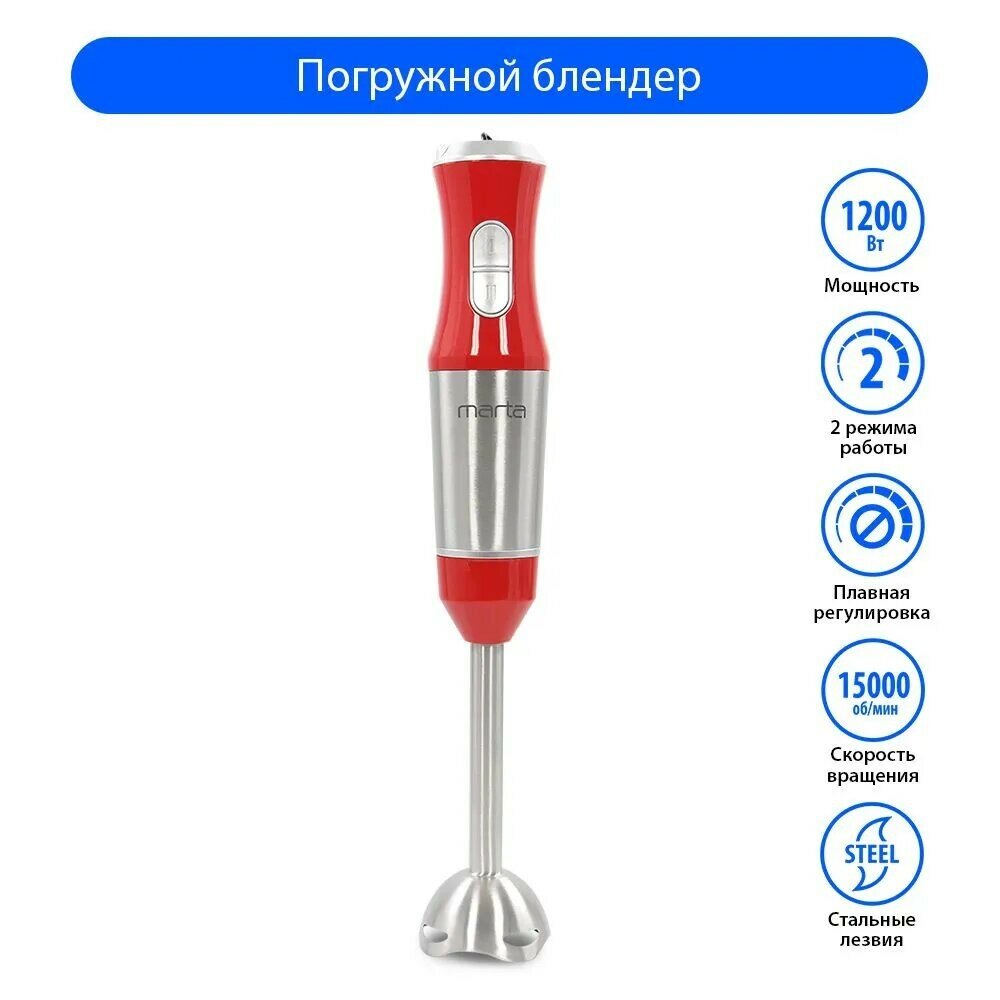 Купить Блендер погружной MARTA MT-1574 1200 Вт, красный коралл