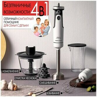 Блендер погружной измельчитель миксер с повышенным сроком службы 4 в 1 с 8-ступенчатой регулировкой скорости Morphy Richards, белый