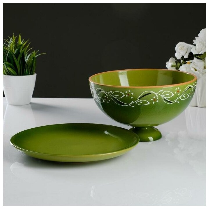 Псковский гончар Блинница "Застолье" зеленый, 24х15см