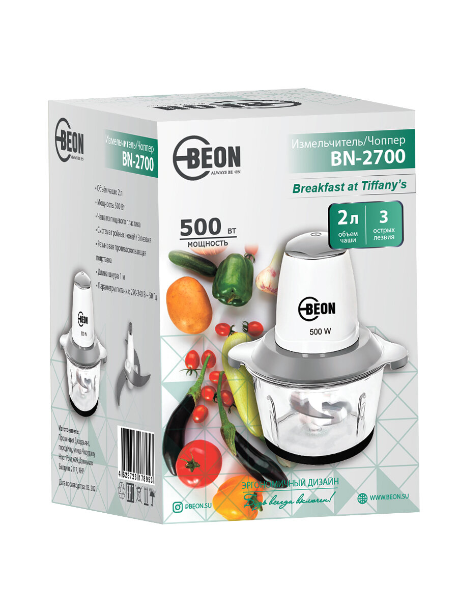 Измельчитель/чоппер BN-2701,чаша пластик 2л, тройные ножи/3 лезвия Beon 4603805370338