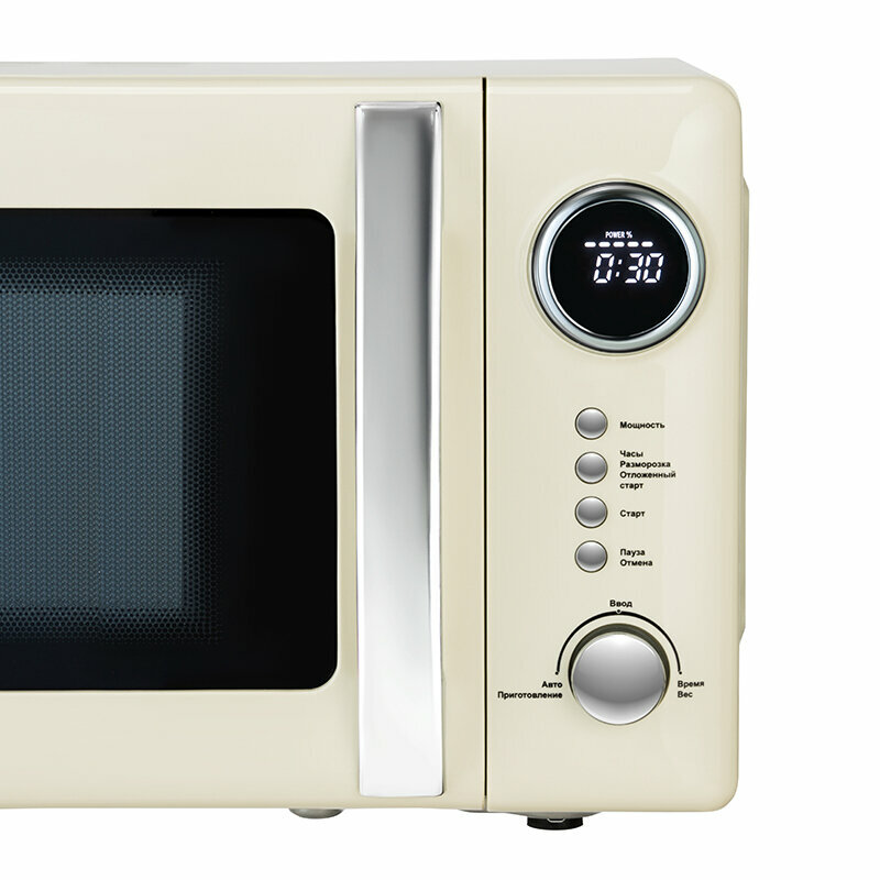 Обычная, простенькая мв печь с красивым дизайном. Если ничего кроме разогрева не надо, можно брать из-за дизайна. С лампочкой надо бы что-то сделать, чтобы иметь возможность смотреть на еду во время разогрева.