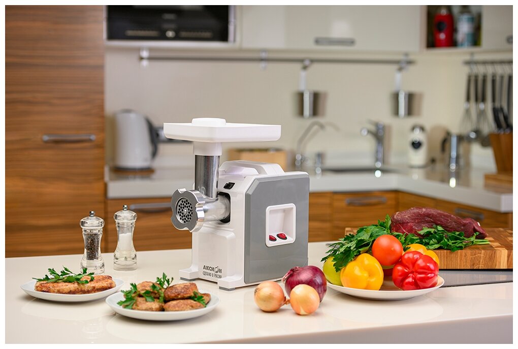 Мясорубка Аксион М43.04 1900 Вт, производительность 2 кг/мин, белый/серый