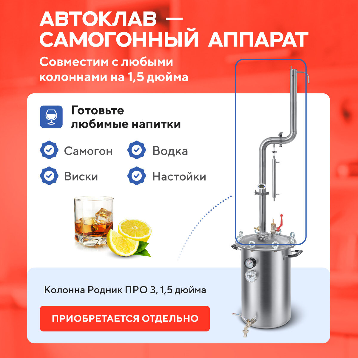 | Отзыв: | Пользуемся этим автоклавом уже давно, за один раз можно заготовить 15 пол-литровых банок. Недавно дополнительно купили к нему колонну на 1,5 дюйма, сейчас экспериментируем с приготовлением самогона. Универсальный аппарат, рекомендую к покупке. |
