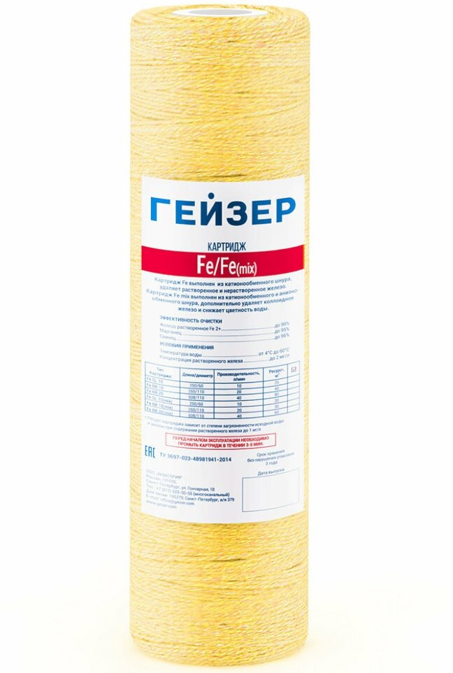 Купить Fe-20BB (mix) Гейзер Картридж обезжелезивания, нити катионит и анионит 28072