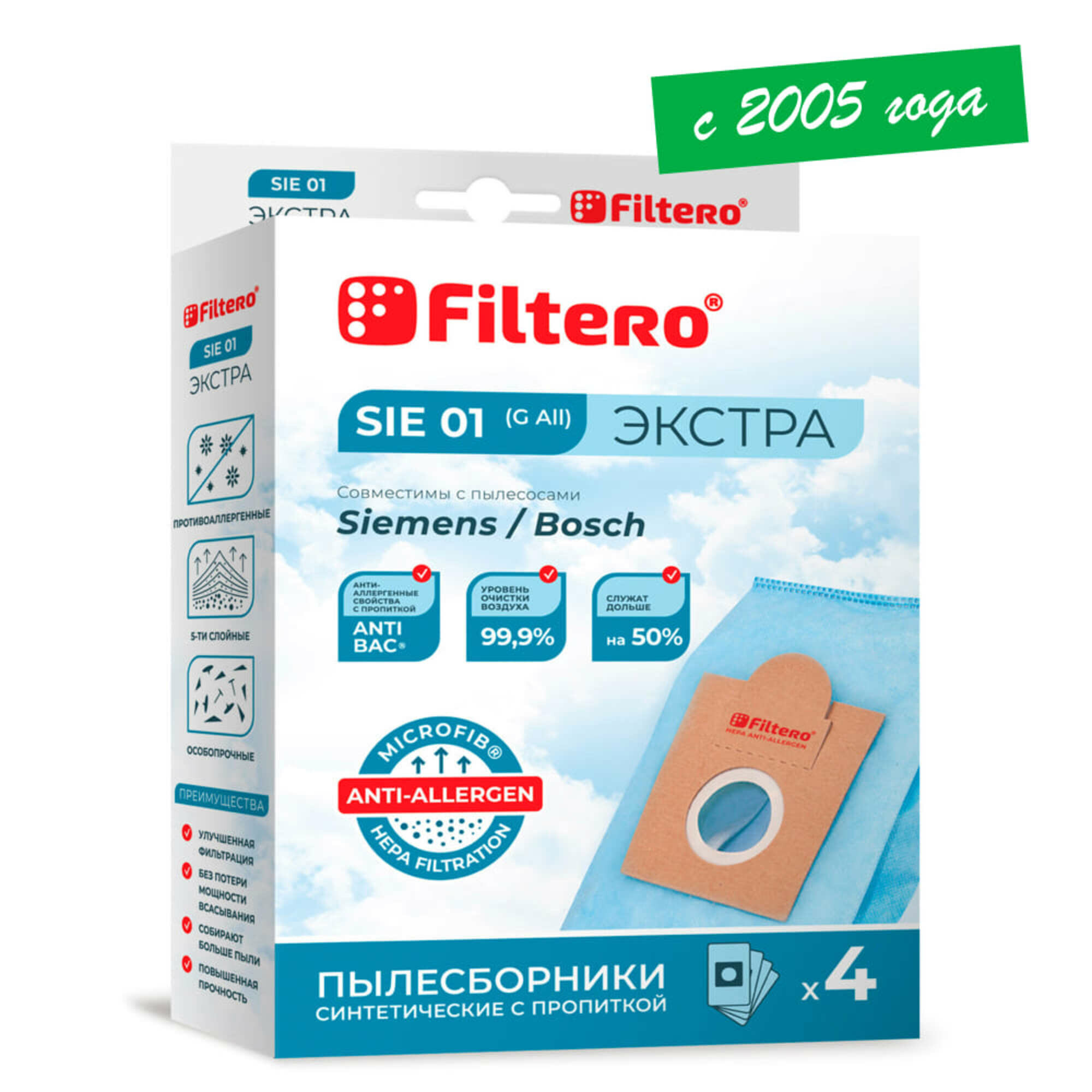 Купить Мешки-пылесборники Filtero SIE 01 Экстра, для пылесосов Bosch, Siemens, синтетические, 4 штуки