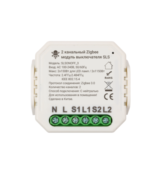 SLS Контроллер SWC-03 Zigbee white / Двухканальный модуль выключателя / Работает с Алисой и Марусей