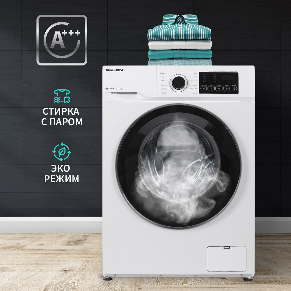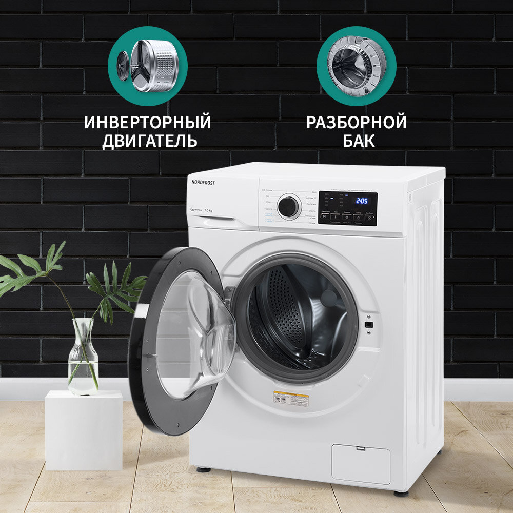 Стиральная машина NORDFROST i-WSQ4 7140 W, 7 кг загрузка, 55 л объем, 1400 об/мин, инверторный мотор,12 программ, цвет белый