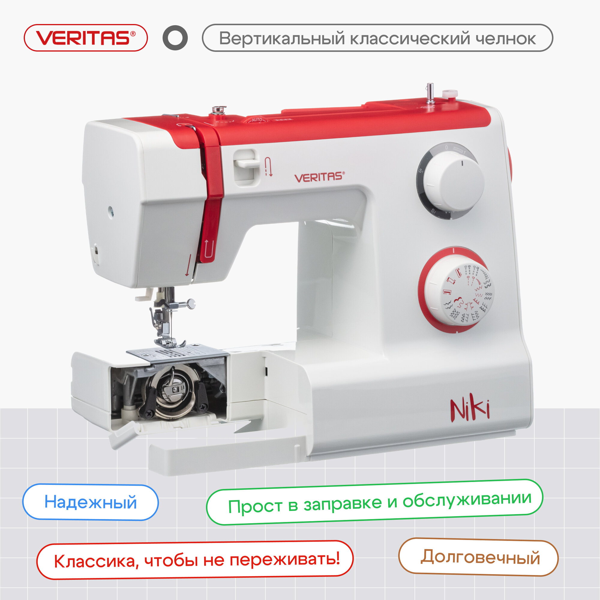 Ниже Вы можете прочитать отзывы на Швейная машина VERITAS NIKI (Ники), ознакомится с подробными характеристиками, посмотреть интересные обзоры и фотографии на Швейная машина VERITAS NIKI (Ники).