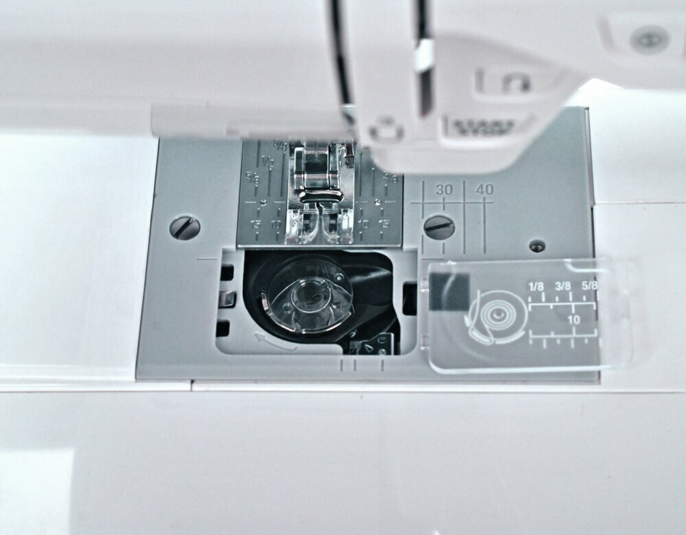 | Комплектация | лапка стандартная A, лапка для втачивания молнии Е, лапка для декоративных строчек F, шпульки 5 шт. (4 шт. и 1 в машине), набор игл Organ — 3 шт., вспарыватель, отвёртка-ключ, щёточка от пыли, дополнительный катушечный стержень, ограничитель для катушек малый — 2 шт., ограничитель для катушек большой — 2 шт., таблица строчек, держатель для таблицы строчек, мягкий чехол |