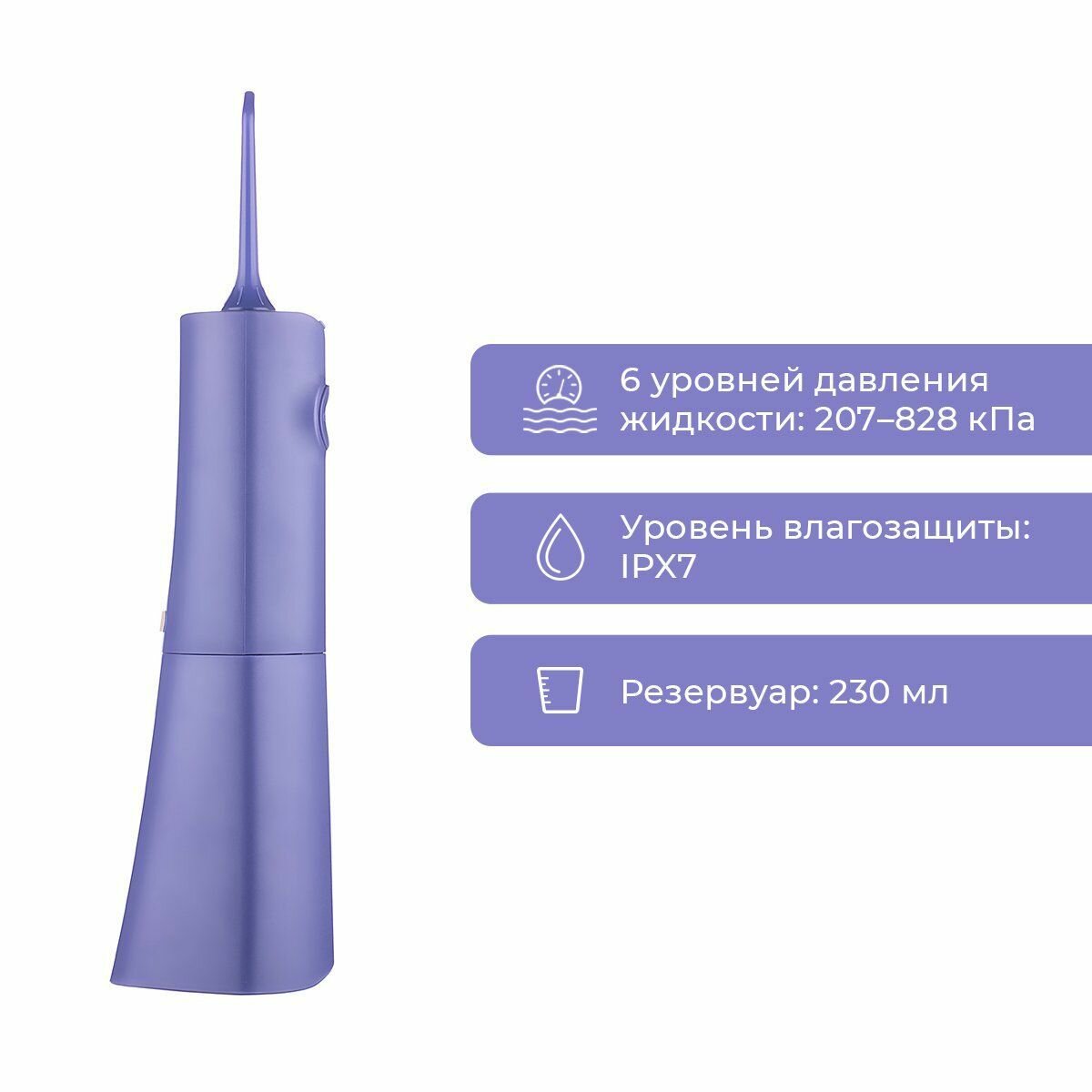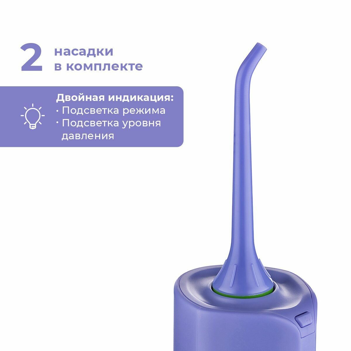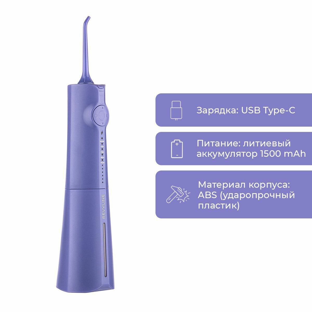 Купить Ирригатор для полости рта Revyline RL 610 Very Peri (Purple), фиолетовый, портативный, 2 стандартные насадки, 5 режимов работы, емкость 230 мл