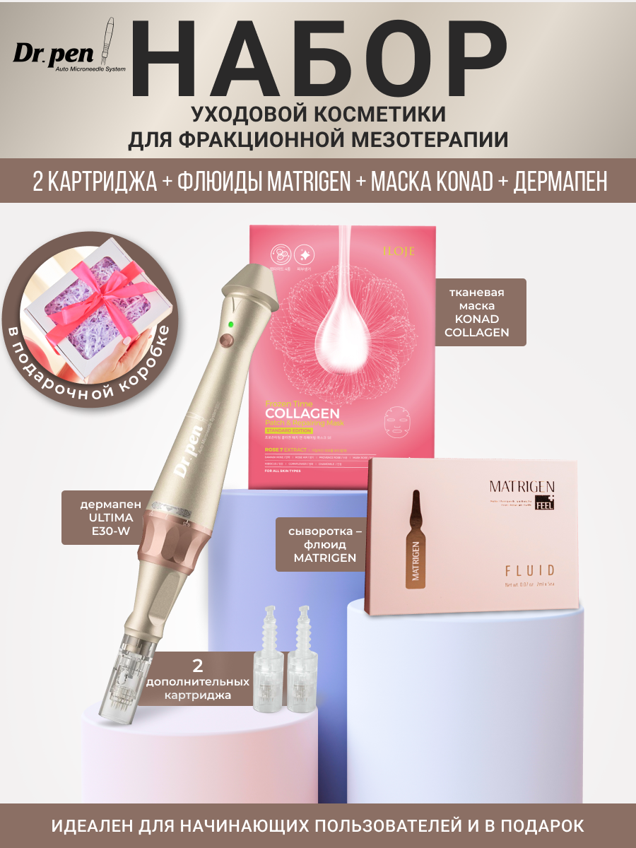 Купить Dr.pen Набор для ухода за лицом Мезотерапии дермапен ULTIMA-E30 + картридж 36 игл + сыворотка флюид + маска