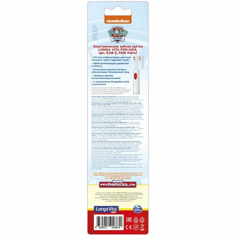 Лонга Вита зубная щетка детск арт КАВ-3 Paw Patrol вибрацион от 3-х лет+смен нас